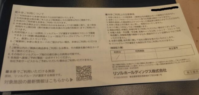 株主優待券を利用するときに株主カードの持参が必須など、他社の優待に比べて使うときの注意点が多いので、よく読んでから優待を使うようにしましょう。