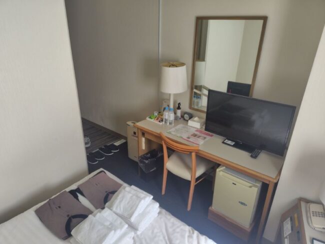 今回は予算の関係上セミダブルだったので、お部屋は少し狭かったです。