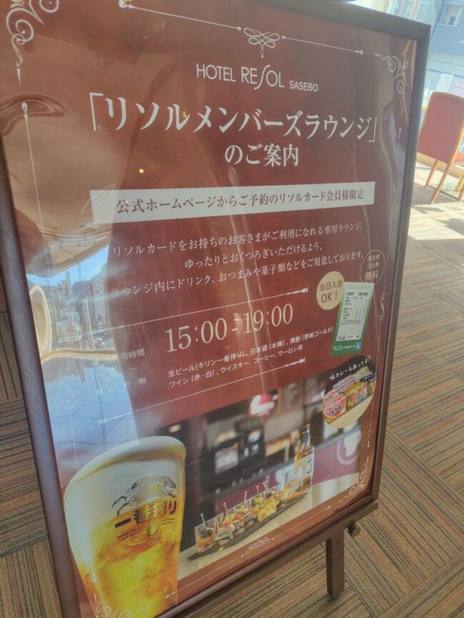 リソルの会員カードを作ると、無料でラウンジ(場所はリソル佐世保内のレストラン)が利用できます。