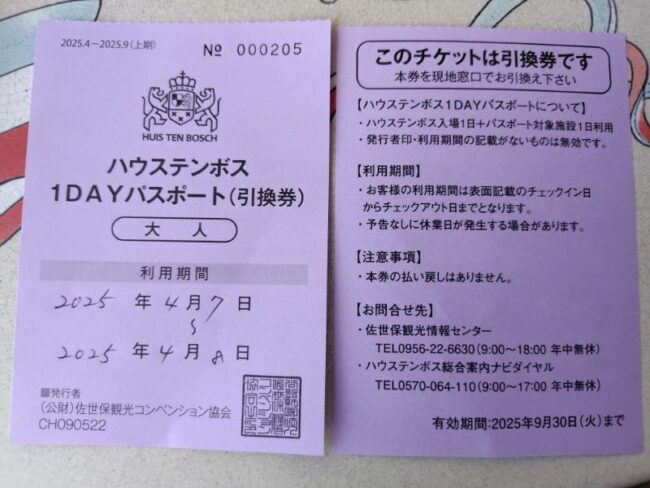 プランに含まれていたハウステンボスのパスポートもいただきました。