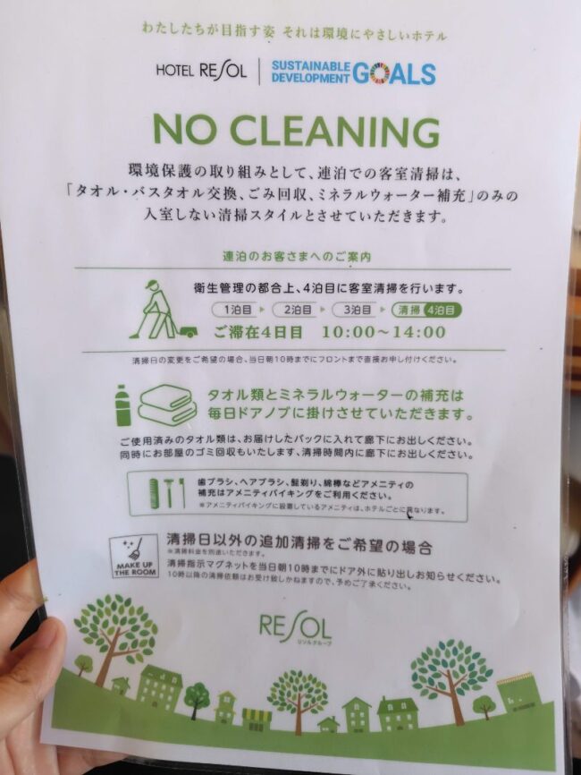 連泊した場合、タオル交換とゴミ回収、ミネラルウォーターの補充にも行われるようです。