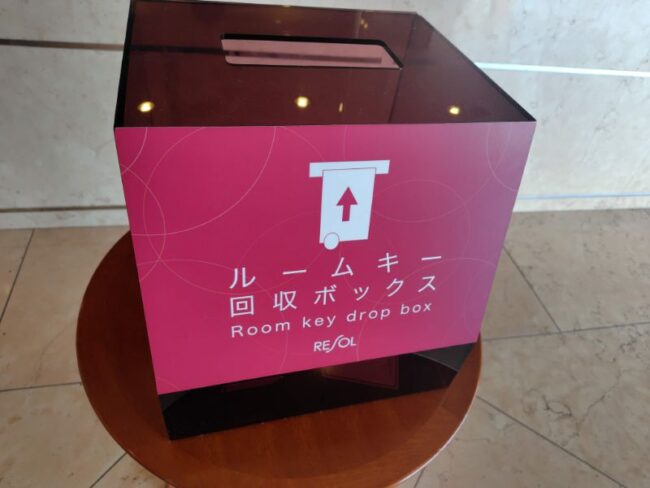 追加の支払いがない場合は、フロント前の「ルームキー回収ボックス」にルームキーを入れてチェックアウト完了。