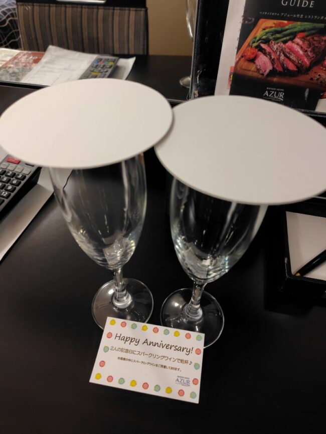 朝食付き、乾杯スパークリングワイン付き、レイトチェックアウトのプランにしました。