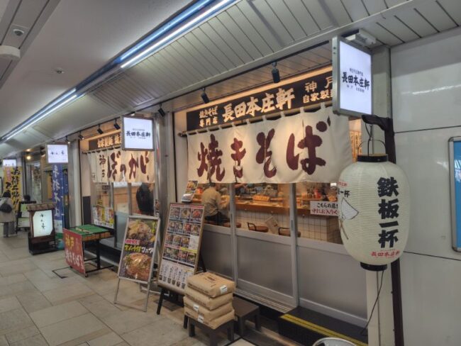 「長田本庄軒(ながたほんじょうけん)」は、店内で製麺した焼きそばメニューを中心に鉄板焼き料理が楽しめる飲食店です。
