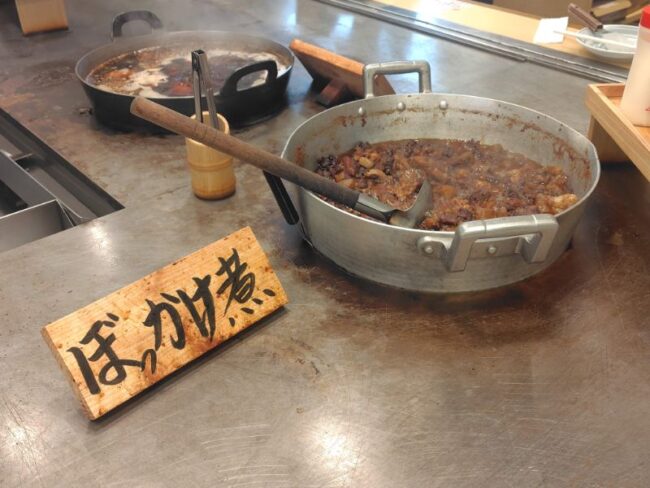 「ぼっかけ」とは、牛すじ肉とこんにゃく(糸こんにゃく)を醤油やみりんなどで甘辛くじっくり煮込んだ兵庫県・神戸市長田区発祥の家庭料理・ソウルフードのこと。