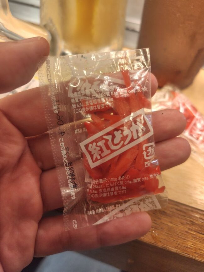 紅ショウガは注文するとサービスで持って来てくれます。