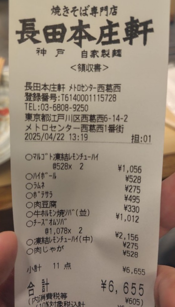 トリドールホールディングスの株主優待、長田本庄軒 メトロセンター西葛西店で使ってみた