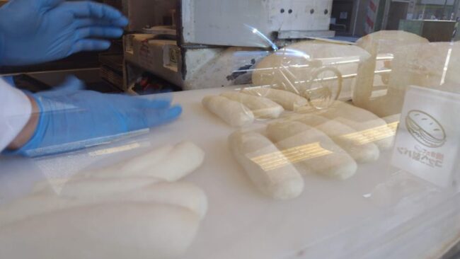 「焼き立て」というくらいなので、店頭でコッペパンを作っているのが見えます。